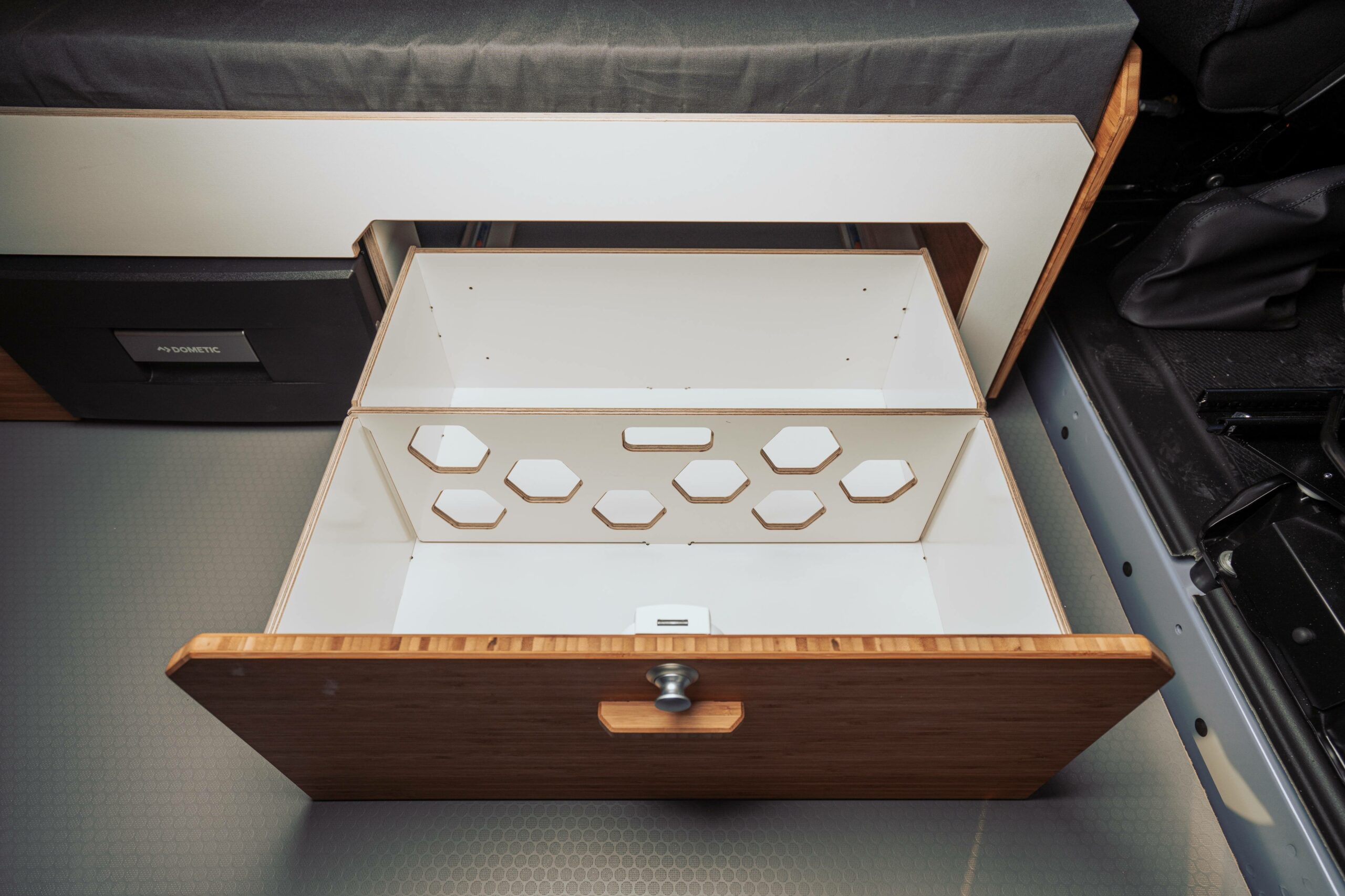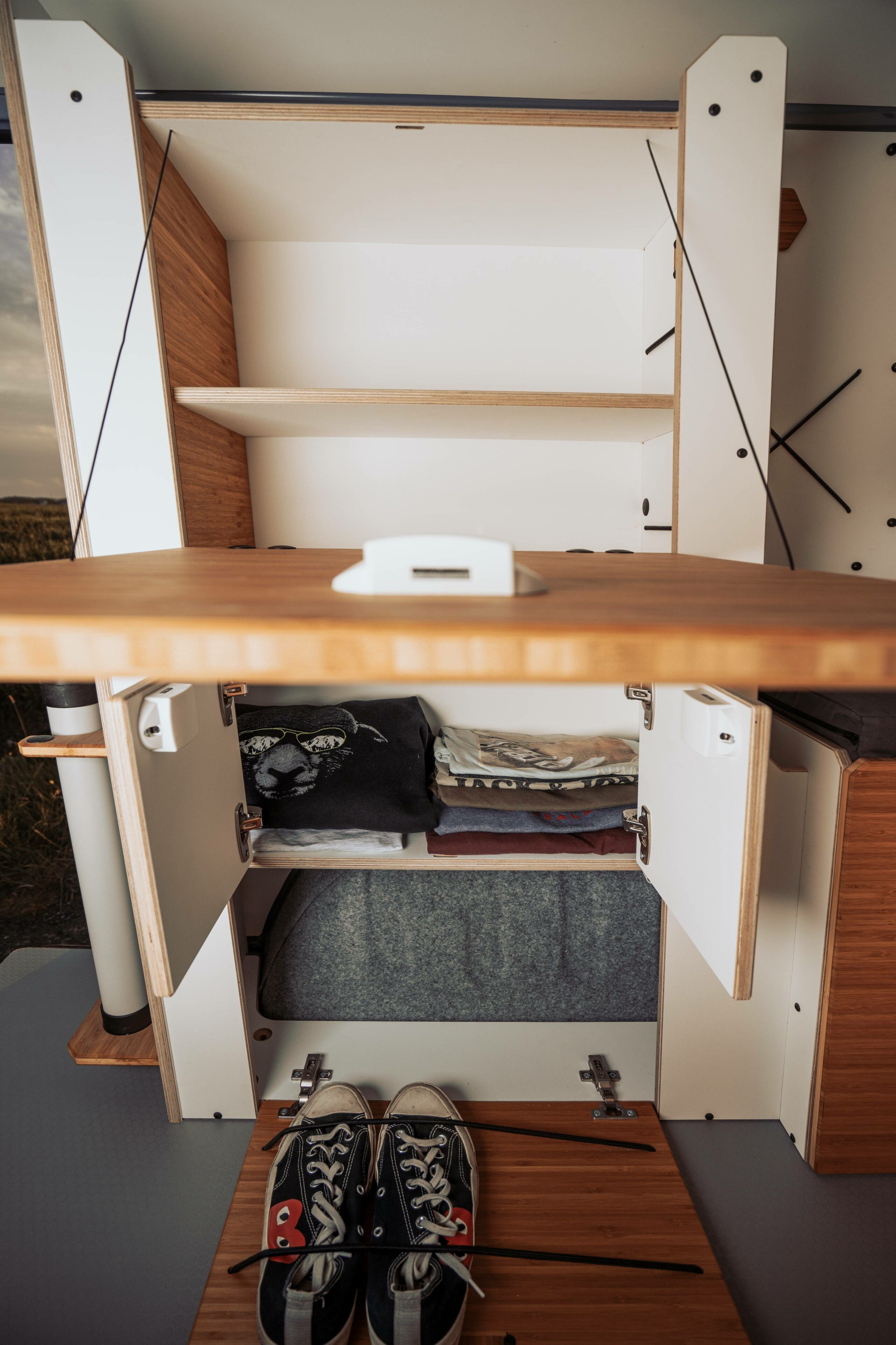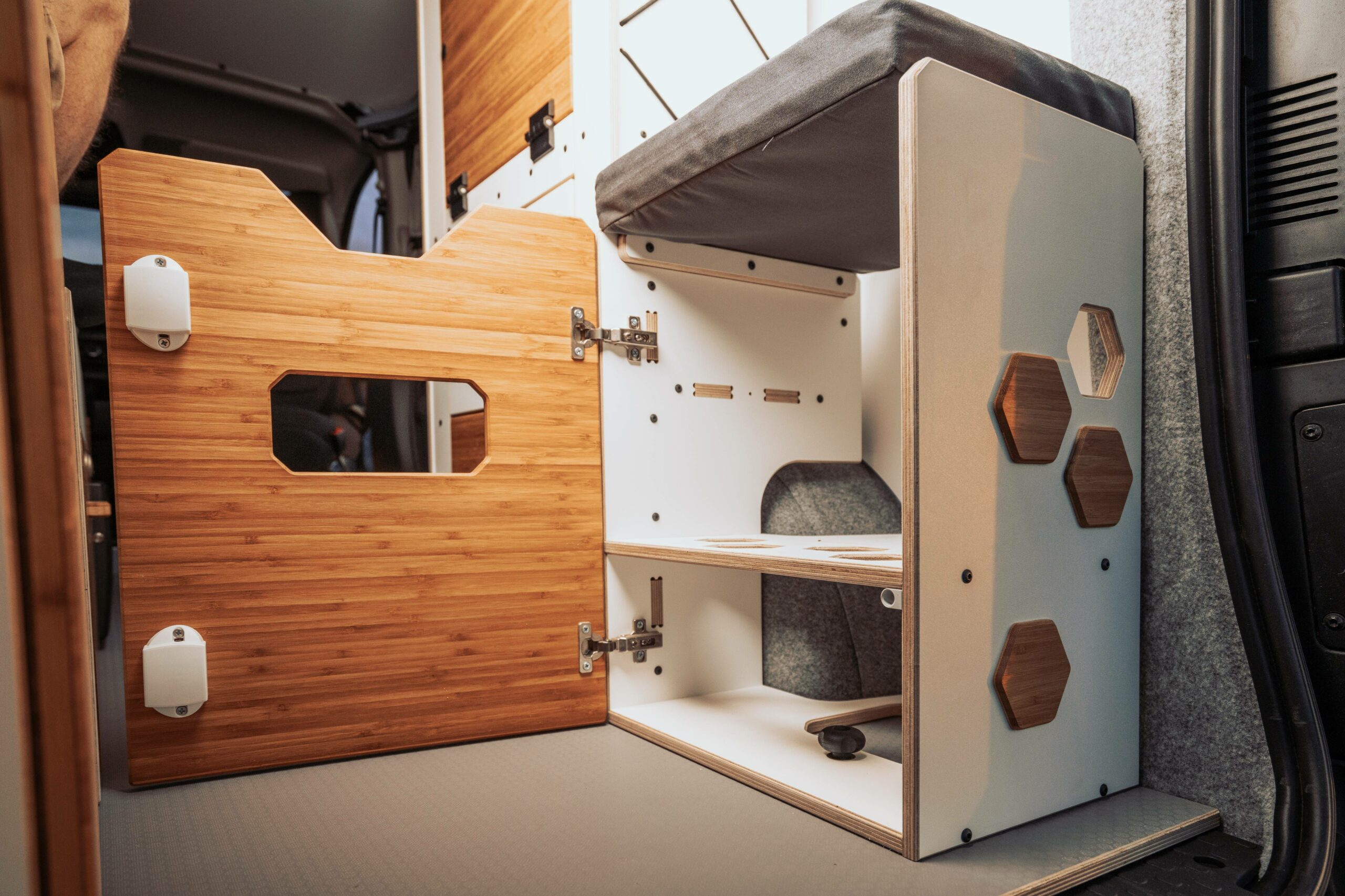 Le kit d’aménagement van NORD (anciennement nommé le kit « North-West ») est le petit frère du kit North et North-East. Il garde l’ensemble des avantages du kit aménagement van North, mais propose une déclinaison plus design et plus de rangements.
